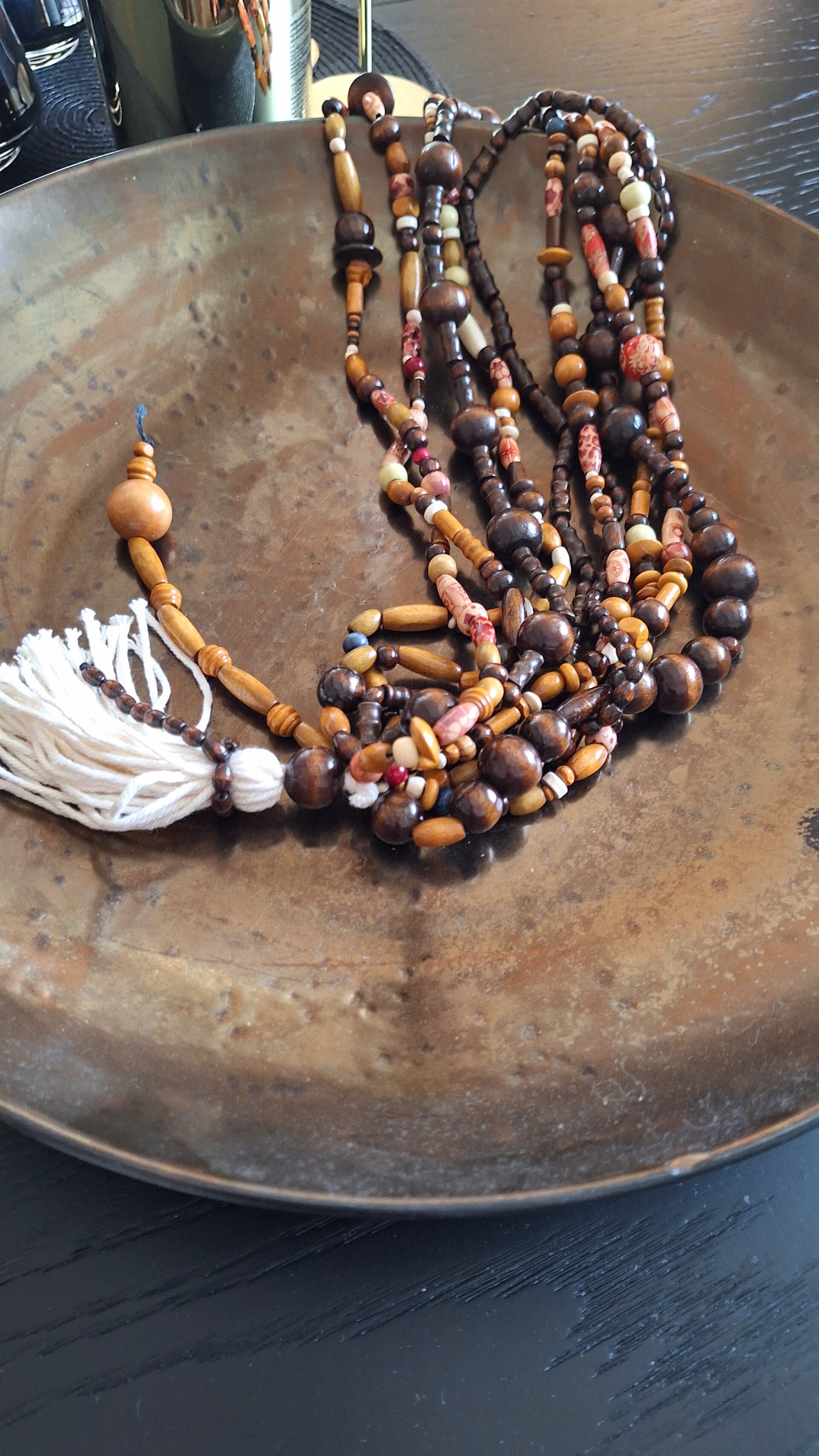 En stilig dekor til ett hvert rom i ditt hjemme eller ute i utestuen. Dette er laget av trekuler i ulike farger og størrelser. Lengde 55 cm.